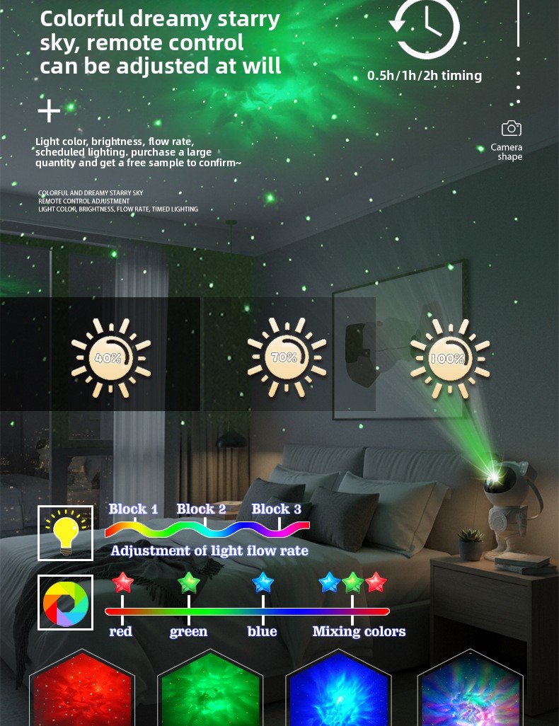 Immersive Nebula & Stars: Experience 8 stunning multi-color nebula effects combined with twinkling green stars that breathe life into your space.