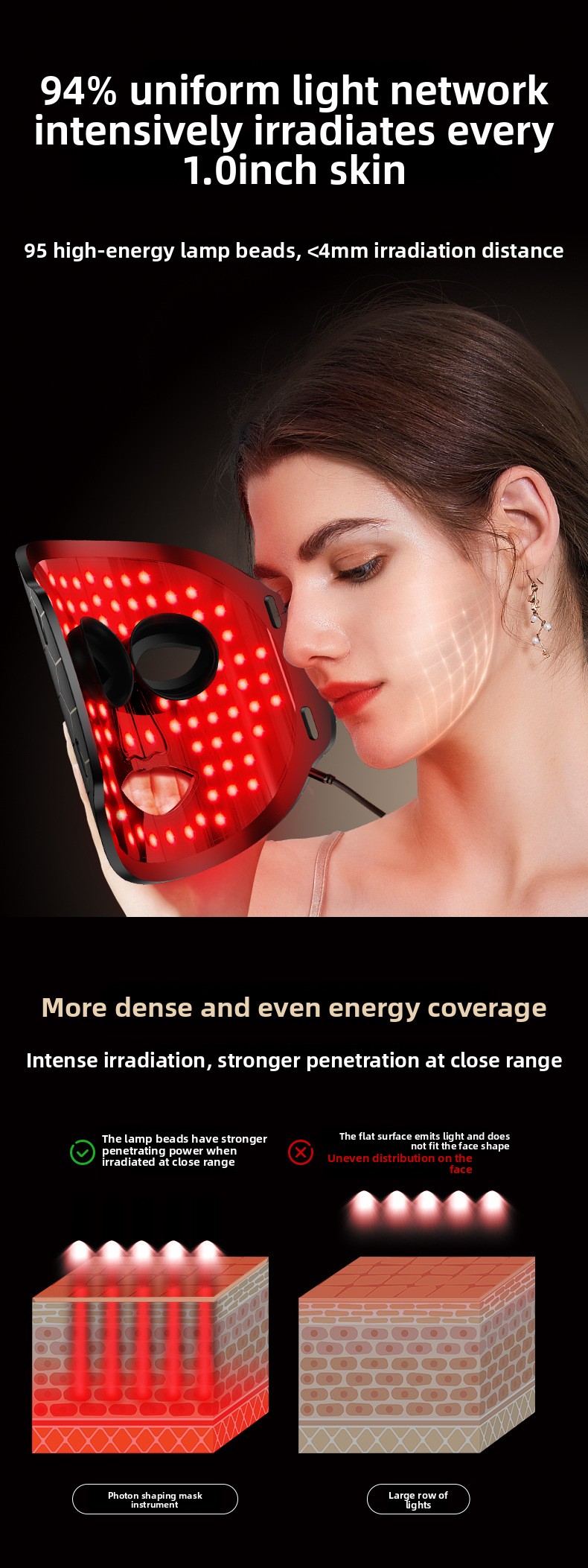 Unlike rigid, heavy plastic masks, our Ergo-Flex™ Silicone Design contours perfectly to your unique facial structure. This ensures every millimeter of your skin receives an equal dose of therapeutic light, maximizing absorption and results.