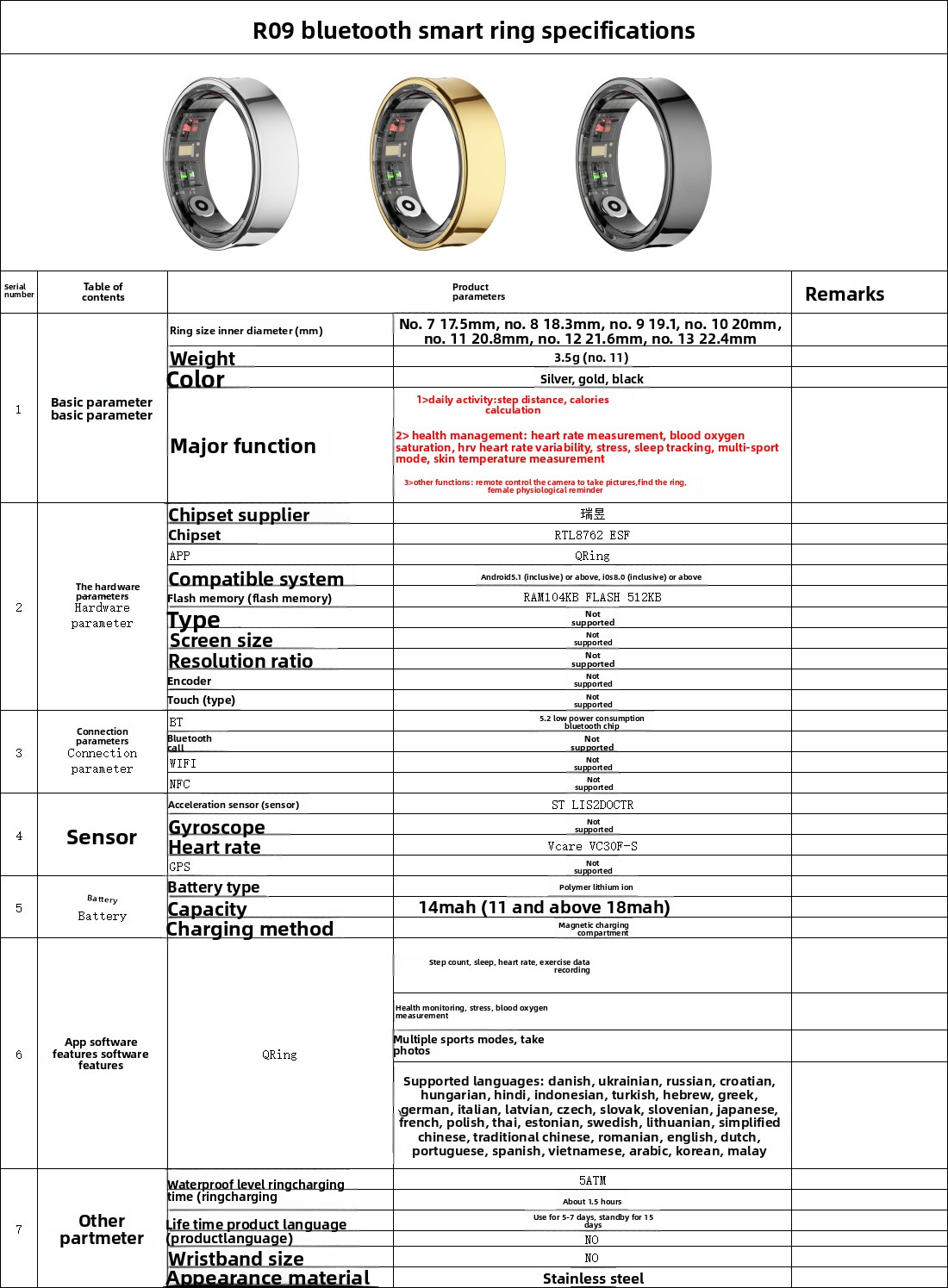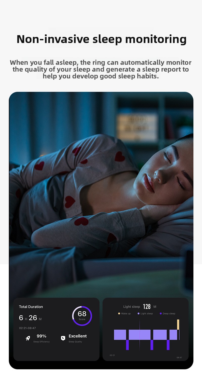 • Feather-Light Ergo-Design: At only 3.5g, the R09 is 20% lighter than traditional smart rings. Its unique concave interior ensures a "barely-there" feel for 24/7 comfort.